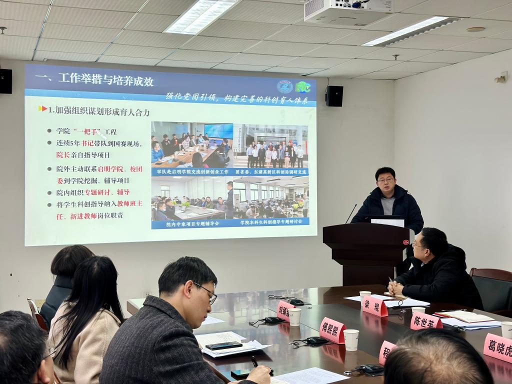 学院班子成员就学院本科及研究生教育教学工作进行汇报。副院长程文青介绍了学院能力导向的人才培养方案、一流课程与教材的建设方案和实践育人环境建设情况;副院长杨铀介绍了学院在构建三横四纵研究生课程培养体系的改革情况;党委副书记陈世英介绍了学院在育人体系、育人环境和育人模式等方面的双创人才培养情况。