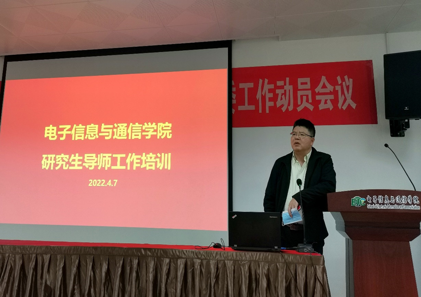 (通讯员 傅熙熙) 为深入学习贯彻习近平总书记关于研究生教育的重要指示批示精神,落实立德树人职责使命,提升研究生培养质量, 4月7日下午,电信学院在南一楼西203会议室召开研究生导师工作培训会议。校研究生院副院长赵峰、电信学院院长邱才明参加会议。