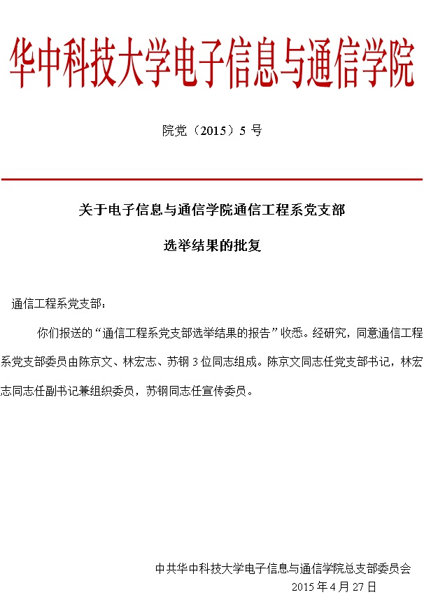 院党(2015)5号 关于玩弄丰满妇ⅩXXX人妻通信工程系党支部选举结果的批复
