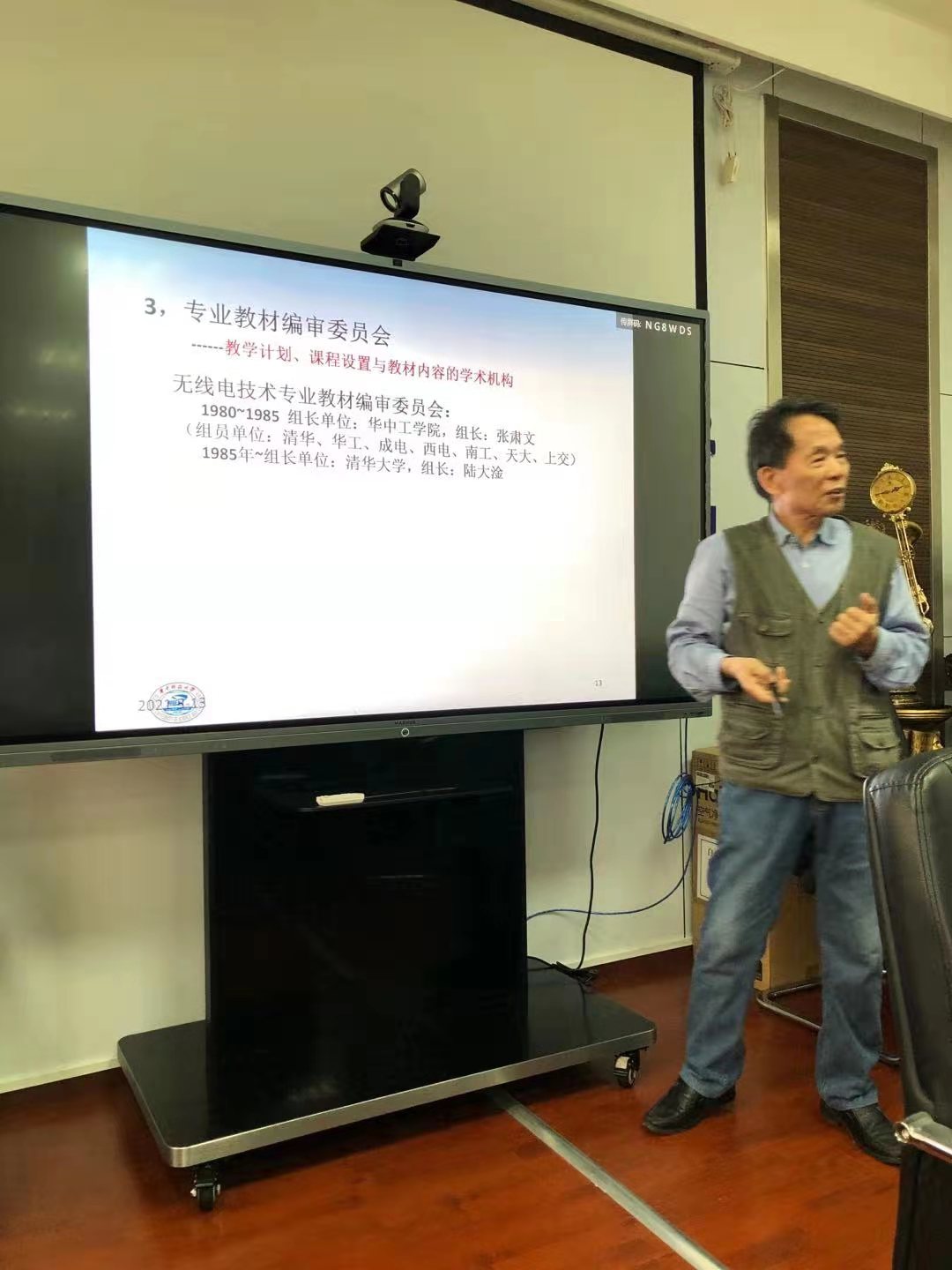 5月13日下午,电信学院举办院史教育专题报告会,邀请学院退休教授、原电子信息与工程系系主任黄载禄为青年教师主讲学院历史,电信学院党委书记郑小建主持报告会。