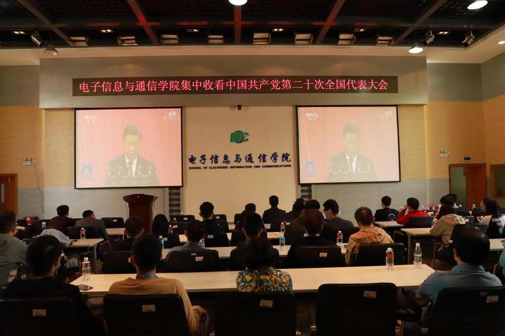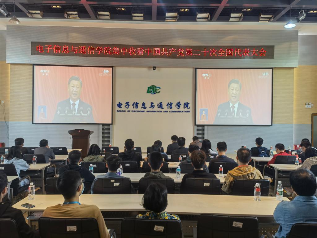 10月16日上午,中国共产党第二十次全国代表大会在北京隆重开幕。电信学院组织师生在东17楼A101报告厅集中收看大会直播,学院党委书记郑小建、党委副书记陈世英、党委委员、教师党支部书记、学生党支部书记和部分党员代表参加。此外,全院师生在学生寝室、实验室等以多种形式收听收看大会直播。
