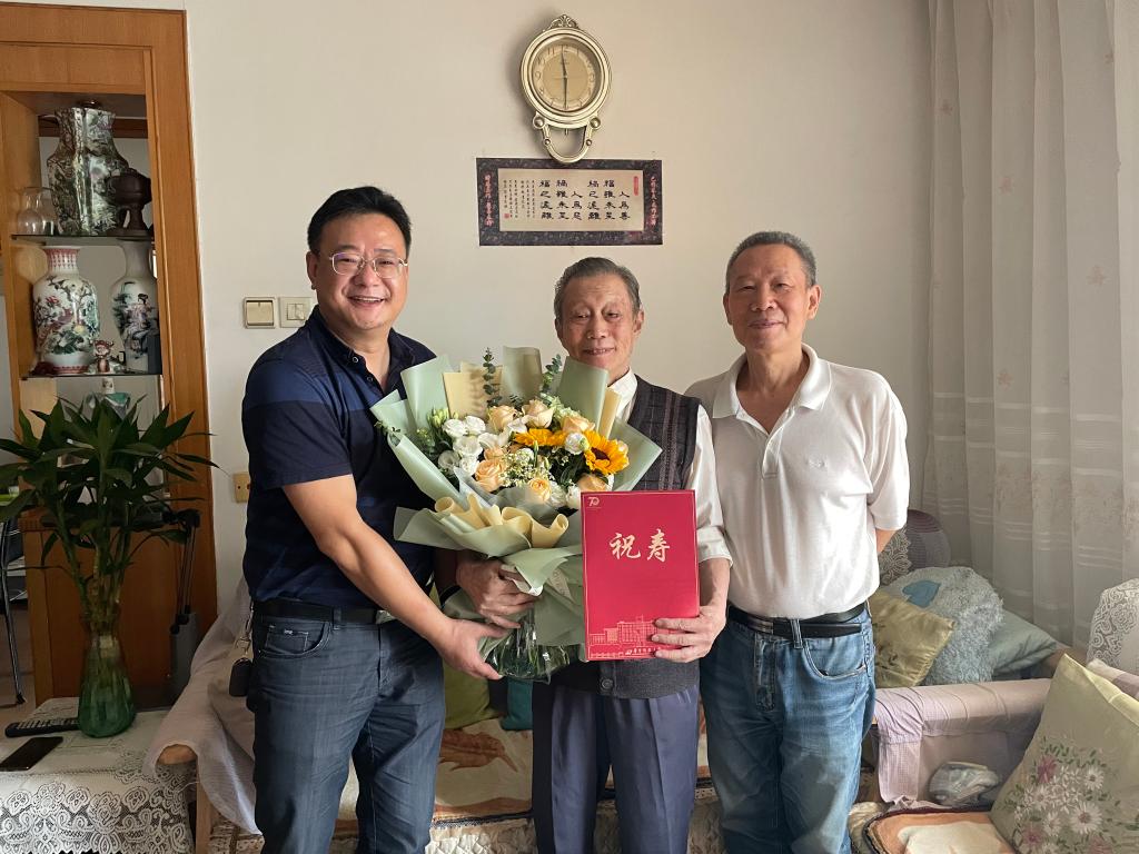 9月28日上午,正值金秋时节,电信学院党委书记郑小建代表学院党委到退休刘华志家里,恭喜刘华志老师90寿辰,向刘华志老师表示了生日的祝福,祝刘老师生日快乐,身体康健。