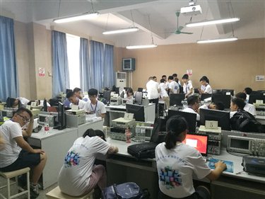 经过短暂的休息,产品现场评测在下午1:30准时开始。评测开始前,各参赛队伍将其产品调试完毕后,搬进测试场地。每次测试只允许一直队伍在场内与评委进行沟通,其他队伍则在候场区进行准备。在准备的过程中,也会有指导老师,或评委老师来窜访,各个队伍也会彼此之间进行交流,营造出相互交流,相互帮助,共同进步的氛围。