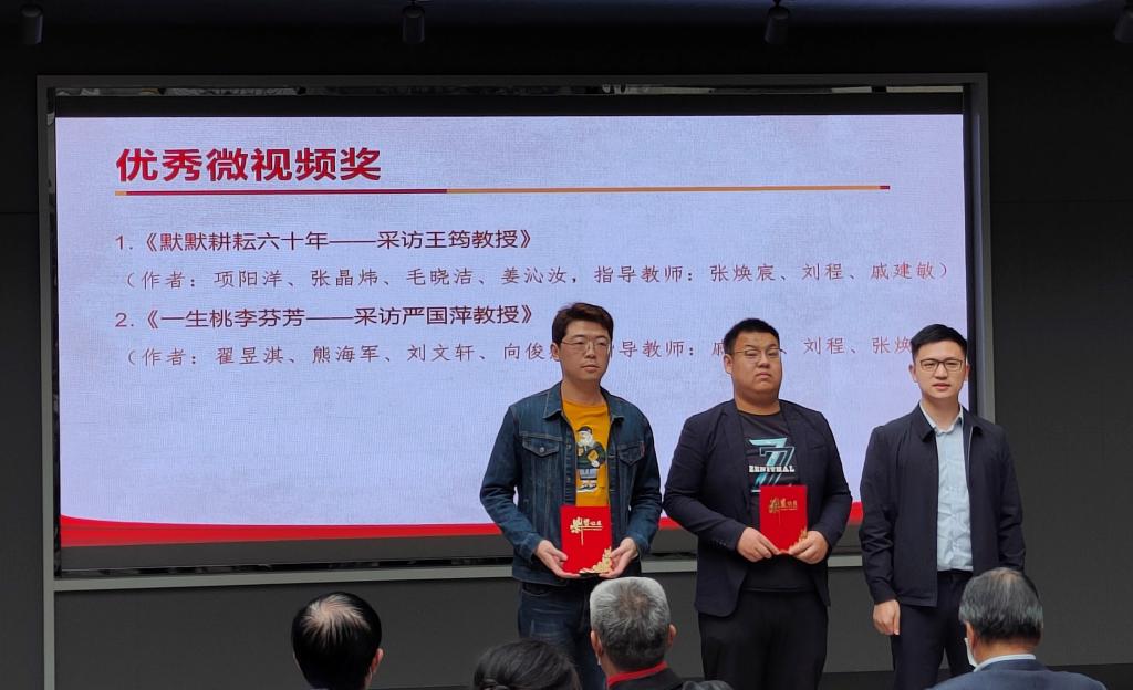 微视频《党旗飘扬讲台,一生桃李芬芳——严国萍教授专访》的作者为翟昱淇、熊海军、刘文轩、向俊杰,采访对象是我院退休教授严国萍老师。通过访谈的形式,再现了严国萍教授成为国家教学名师背后的故事。