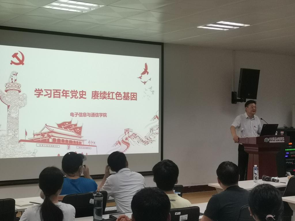 6月9日下午,电信学院党委书记郑小建讲授“学习百年党史,赓续红色基因”专题党课。学校党史学习教育督导组组长林林、副组长郑超、联络员王腾飞到会指导。学院各教职工党支部委员、本科生、研究生党员代表参加学习。