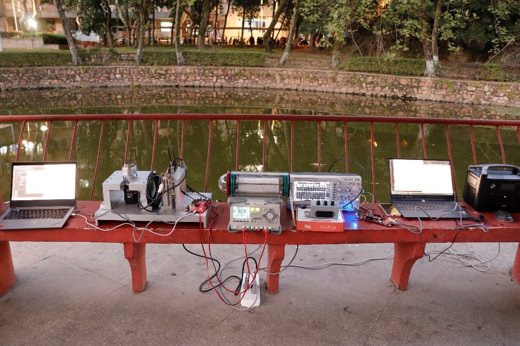 “可软件定义的宽带水声OFDM通信系统”项目获全国二等奖,团队成员为电信学院研究生黄运龙、汪思翔和本科生刘可立,以“老”带“新”,协作攻关。从理论研究到原型验证平台开发,从室内水箱测试、到室内水池测试、再到室外湖泊测试,团队历时两年,攻克多项技术与工程难题。经过广泛的测试验证,系统功能逐步完善,目前已实现中心频率、可用带宽、发射增益、编码方式、编码率、调制阶数、载波数量等主要通信与信号处理算法/参数的可软件定义,可实现文本、语音、图像、视频等数据的实时采集、发送、接收和显示。
