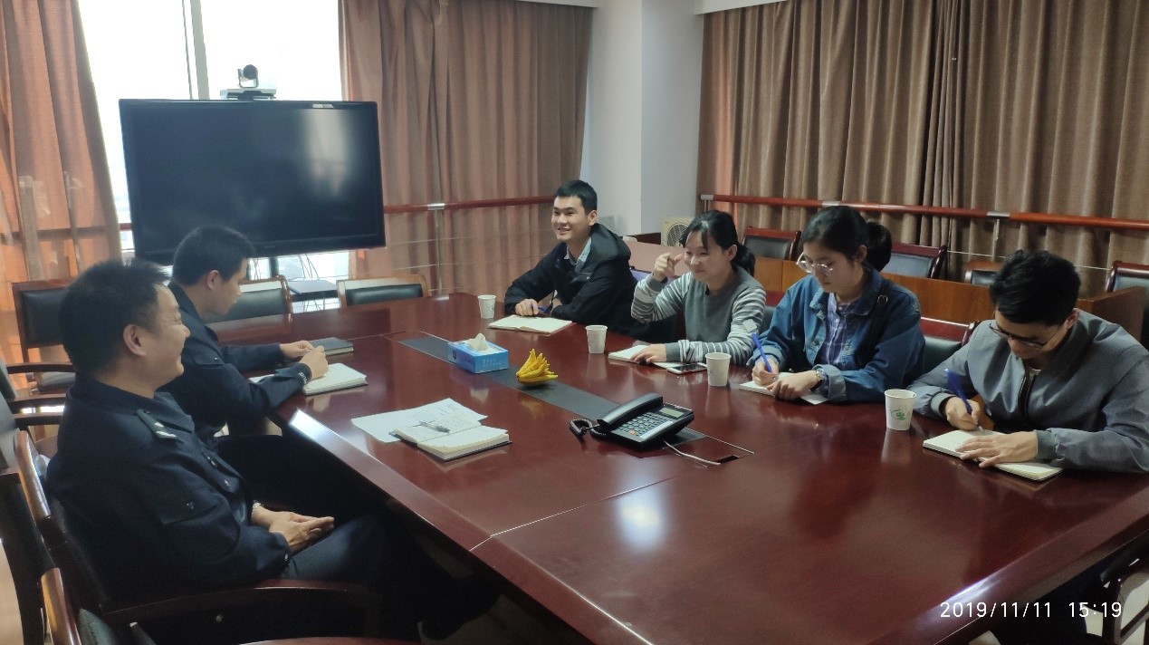 11月11日,社会实践队抵达浙江省公安厅,与公安厅领导和我院19届选调生闫守康进行了座谈。浙江省公安厅是浙江省人民政府下设主管全省公安工作的职能部门,闫守康就职于浙江省公安厅下的侦察(反恐)中心,该部门的主要工作是通过信息化手段监测预防恐怖事件的发生,将恐怖行动扼杀在摇篮中。