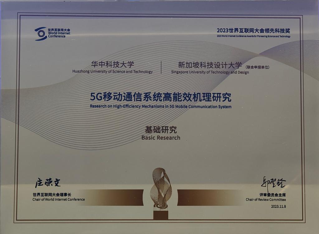 11月8日下午,世界互联网大会领先科技奖颁奖典礼在浙江乌镇举行,电信学院项目“5G移动通信系统高能效机理研究”获世界互联网大会领先科技奖,系华中科技大学首次荣获该奖项。电信学院钟祎、葛晓虎两位老师应邀接受颁奖并现场发布该获奖成果。