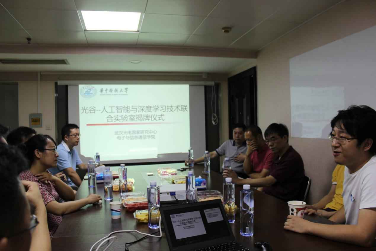 揭牌仪式后,白翔教授主持召开了人工智能技术发展座谈会,整体介绍了我校在人工智能领域发展现状。曾绍群教授进一步介绍了该联合实验室成立的目标,即首先要培养一大批擅长人工智能技术的高级人才,其次旨在整合跨学科研究优势,通过面向深度学习的基础模型算法研究,探索人脑工作机理与深度学习和机器学习模型的深度融合,并促进人工智能技术在生物大数据分析与理解中的应用与落地。