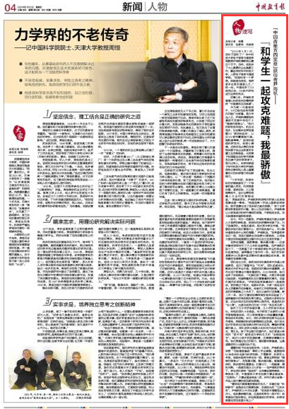 2024年5月23日,《中国教育报》以“和学生一起攻克难题,我最骄傲”为题报道我院教师、中国青年五四奖章获得者尹海帆与学生一同攻克技术难题的育人故事。