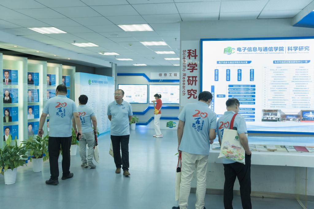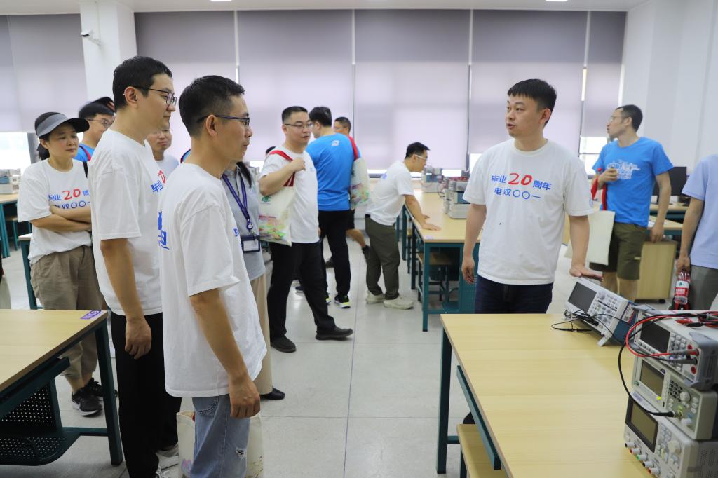 最后,电信学院党委副书记陈世英带领校友们参观电信之家与电工电子实验教学基地。校友们在电信之家签名打卡,茶歇娱乐,在实验教学基地与恩师洽谈,现场气氛热烈。