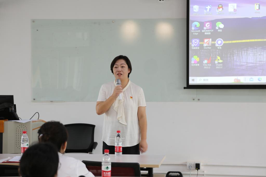 随后,在东校区201教室,电信学院党委书记葛茜介绍了推进教学实验中心党支部和硚口区崇仁路小学联合党支部共建的希望,希望教学实验中心能利用自身教学优势,加强与崇仁路小学的共建活动,将先进的教学理念、教学方式带给崇仁路小学,加强小学生的思想道德教育,加强思政体系构建,为党育人,为国育才。