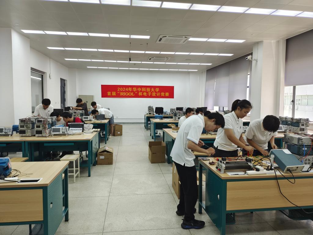 8月5日,我校在东十七楼F区举办了2024年华中科技大学首届“RIGOL”杯电子设计竞赛。全校共有15支队伍参与此次竞赛,覆盖题目类型包括A、B、C、G题。5支队伍获得了省三等奖(校级评审最高奖项),获奖队伍成员来自集成电路学院、电信学院和光电学院。