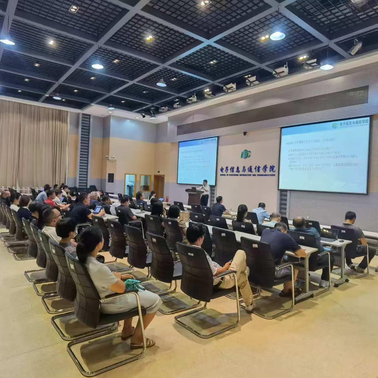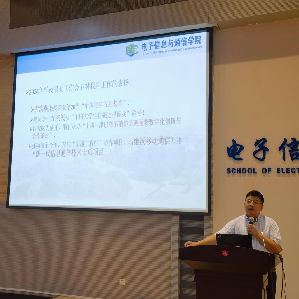 院长邱才明全面总结了2023-2024学年学院各项工作情况,充分肯定了全院师生取得的优异成绩和崇高荣誉;在传达学校暑期工作会议精神时,着重对电信学院贯彻落实“深化教育综合改革,一体推进教育科技人才事业发展,为中国式现代化贡献华科大力量”的目标任务提出明确工作思路和要求。他指出,学院应扎实落实立德树人根本任务,发掘和突出育人优势特色,推动科研反哺教学;探索实施“科研团队制”管理,落实有组织科研;统筹加强基础纵向和军民融合科研,做大做强医工交叉、人工智能、元宇宙等重要领域,不断汇聚标志性成果;加强人才引育,优化学科建设队伍,推进教育、科技、人才融汇。