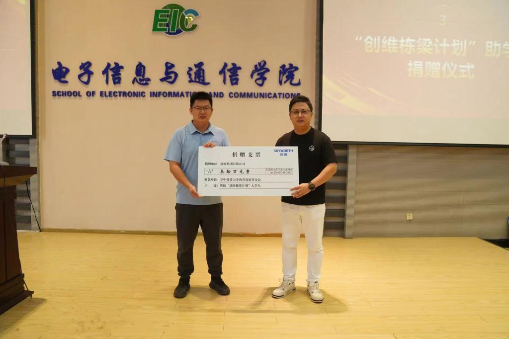9月22日上午,“创维栋梁计划助学金”捐赠仪式在东十七楼A101举行。“创维栋梁计划助学金”由创维集团出资30万元设立,计划在未来三年内,选拔并资助60名综合表现突出或家庭经济困难的学生,旨在为有志于创新研究的青年提供经济支持,助力他们在学业上不断精进、追求卓越。