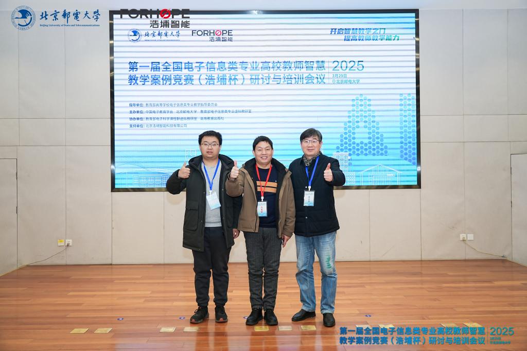 3月29日,由电信学院教学实验中心党支部书记、主任邓天平教授带队携实验中心教师吴建新、夏景圆一行三人前往北京邮电大学参加了第一届全国电子信息类专业高校教师智慧教学案例竞赛(浩埔杯)研讨与培训会议。