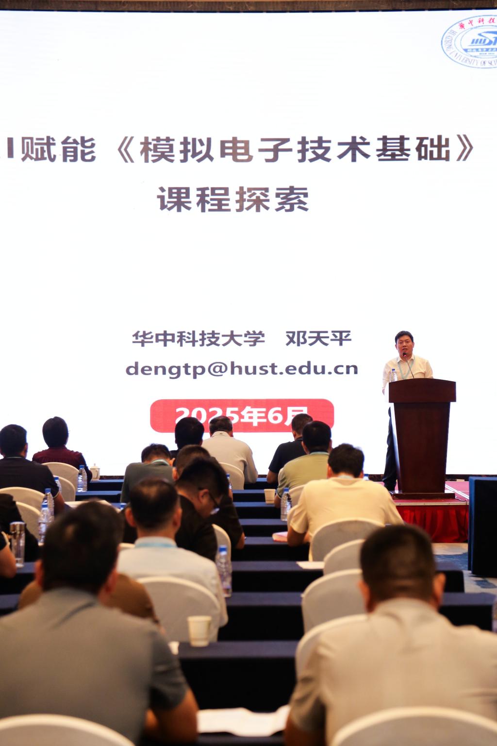 邓天平教授以《AI赋能课程探索——以<模拟电子技术基础>为例》为题,分享了人工智能深度融入教学的前沿实践。报告紧扣教育部“人工智能+教育”改革方向。在报告中特别警示AI教育的潜在风险,引用北师大研究数据指出:长期接受纯AI教学的学生情感表达能力下降达27%。他强调:“教师对学生的全面关怀与灵魂唤醒是技术无法替代的核心价值。”为此,研究团队创新性提出“知情共育”智慧教育范式,聚焦三元空间学习中认知-情感-成效的协同演化机制,实现教学过程可量化、效应可调节。