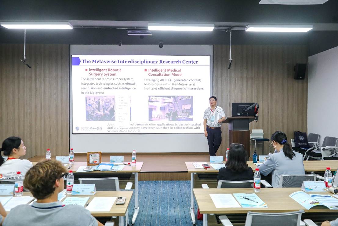 电信学院院长邱才明教授向学员介绍了学院60余年的发展历程和深厚的教学科研实力特别是近年来在元宇宙领域的开拓性研究进展。