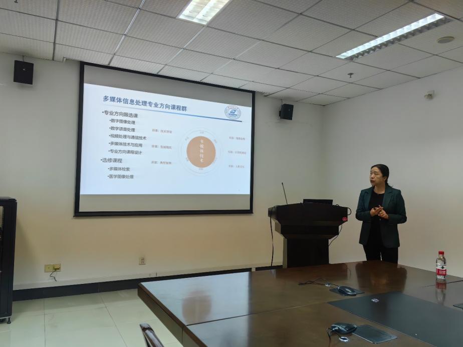 喻莉首先结合生活中的VR视频、立体图像等例子深入浅出地向同学们解释了多媒体信息的具体含义,然后从专业学习内容入手,分别展示了核心课程(如数字图像处理、数字语言处理、视频处理与通信技术)的课程目标与教学计划,使同学们初步对专业有一个全面的了解。她表示,数字图像处理课程需要同学们熟练掌握图像处理的数字处理技术,计算机视觉、人工智能、图形学等基础知识,需要同学们付出努力。